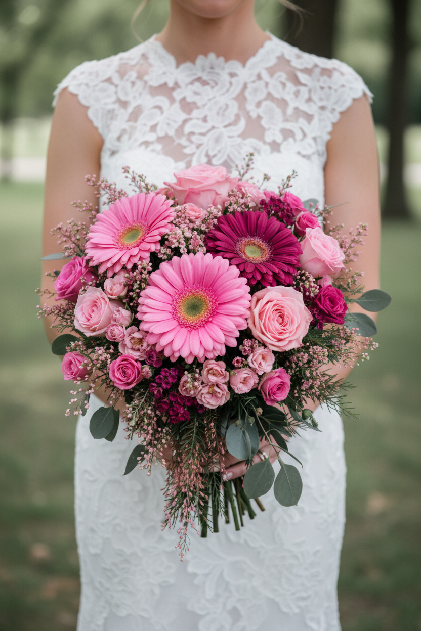 Playful, bright pink -sweet bouquets with nostalgic bubblegum charm