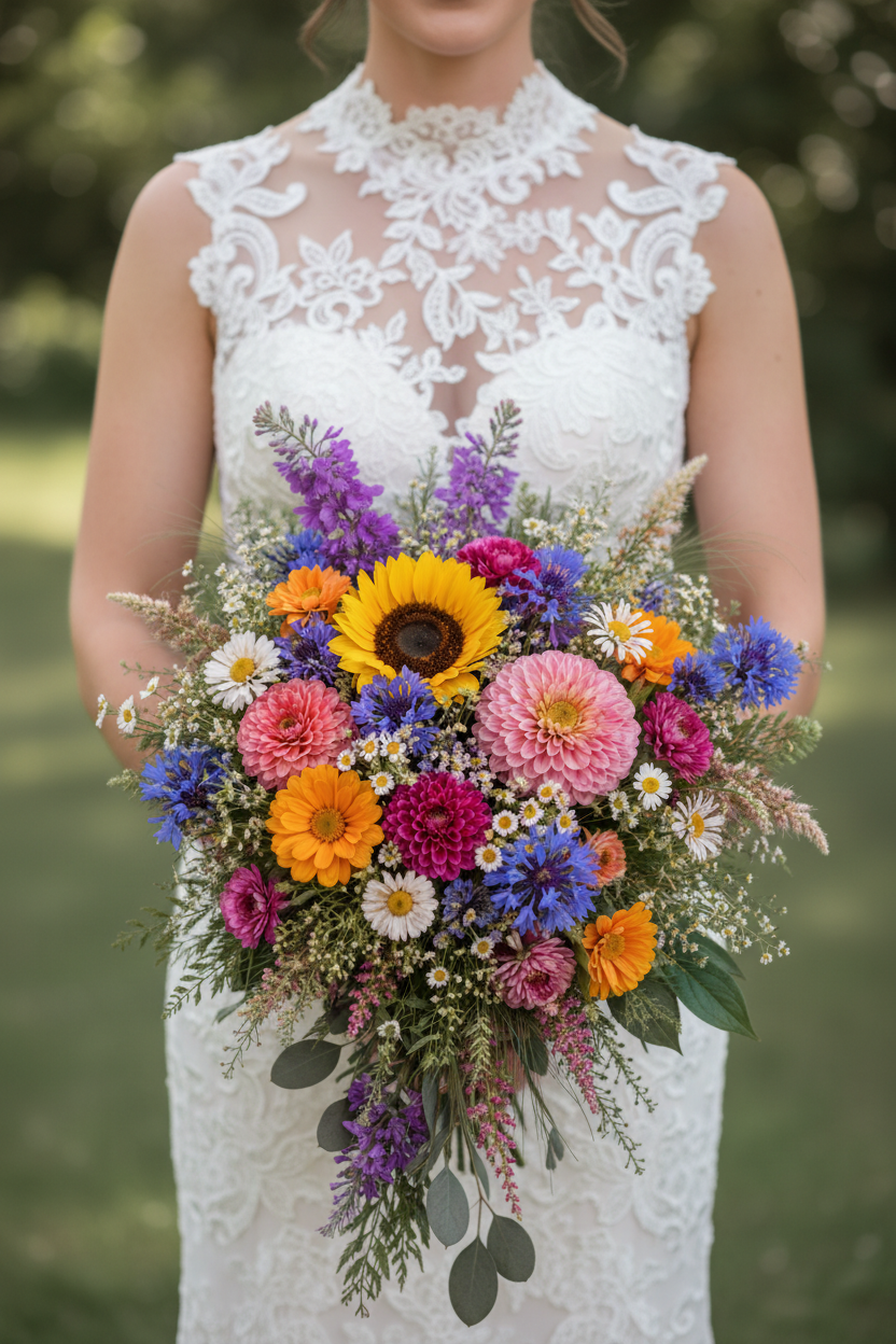 Carefree, natural wildflower bouquets—whimsical elegance for any celebration